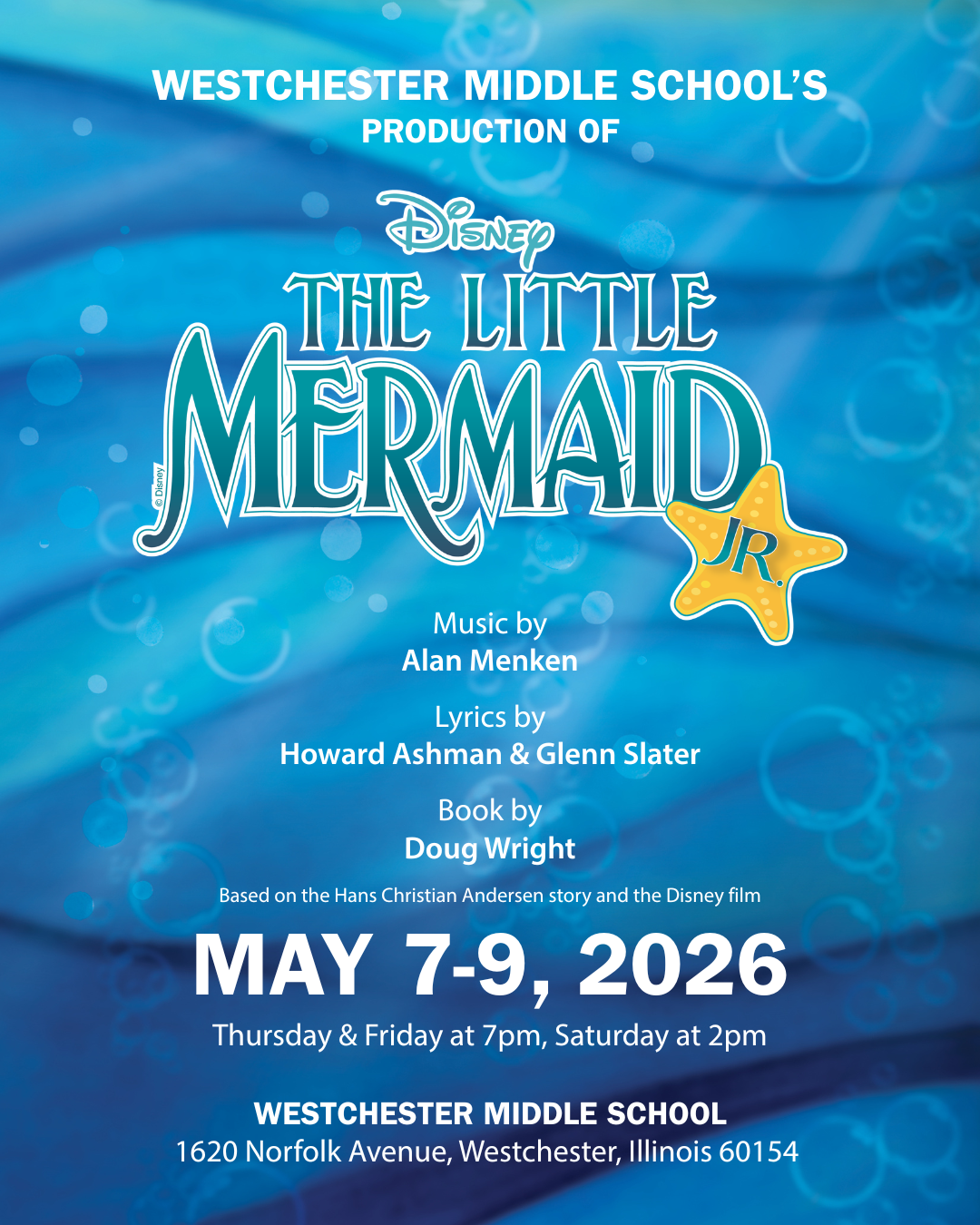 Come Watch The Little Mermaid, Jr. at Westchester Middle School! Tickets will be on sale soon in all school offices.
